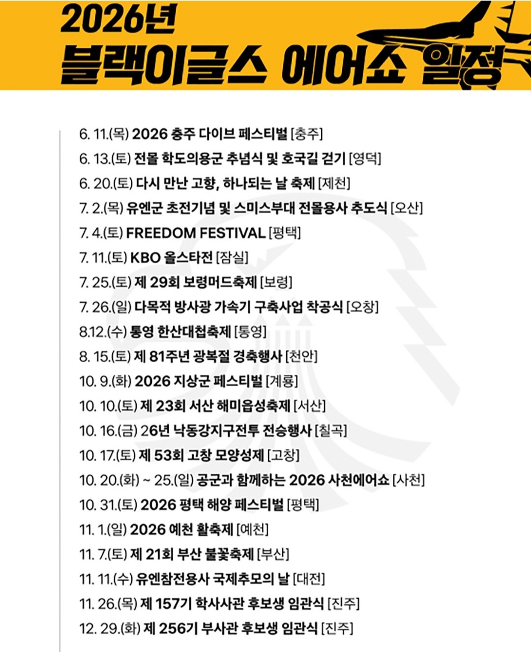 📅 2026년 블랙이글스 에어쇼 일정 (하반기)
